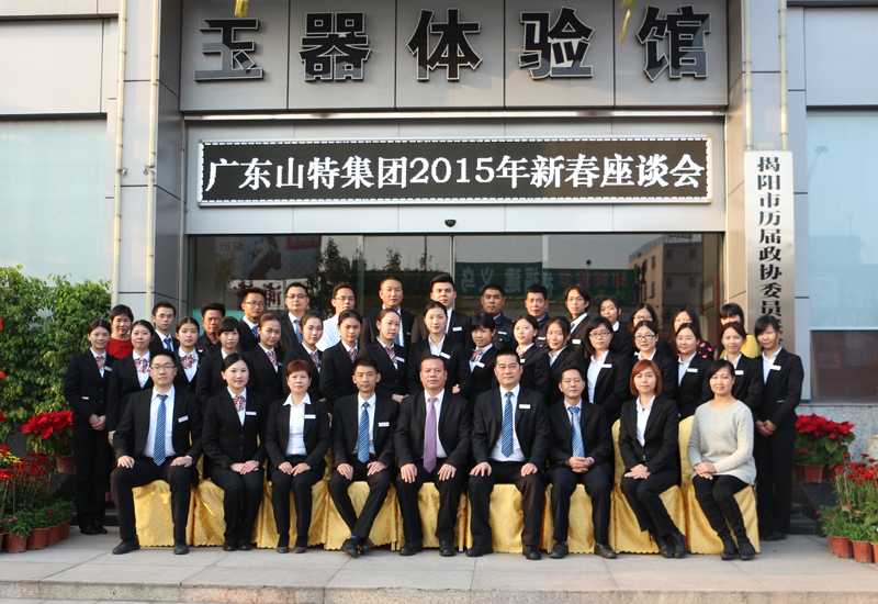 在座谈会上,集团领导层、各部门主管及优秀员工代表汇报了2014年的工作情况,认真总结并深入反思工作上的得失,并作新年工作计划。集团董事长袁赵伟也发表重要讲话,他首先向全体员工致以新春最诚挚的问候;接着,他回顾了集团2014年所做的各项主要工作,认为2014年是他感触最深的一年,也是收获最多的一年。在这一年,山特集团完成了集团总部建设、推进医院项目工地建设、与国内多个城市的合作加盟工作取得了新突破、与各省商会的合作也进入了一个新阶段,在多项工作上取得了喜人成绩。他强调工作的开展既要结合中央和省的政策,也要与揭阳的地方实际情况相结合,不断创新,加大企业的研发力度,才能逐步提升企业知名度。袁赵伟董事长也重点介绍了集团2015年的主要工作,提出要狠抓产业的结构调整,坚定不移实施创新驱动发展战略。接下来,集团将积极推进企业的多元化发展,攻坚克难,努力实现玉器、酒店、建筑装饰、医疗卫生等主导产业的提质升级,促进各产业均衡发展。在玉产业方面,将明确未来玉器的发展定位,坚持走品牌化、大众化、标准化的发展道路,让美康玉器朝着大众化品牌玉器的方向不断发展。在做强做大国内市场的同时,也大力拓展国际市场,摸索“走出去”的发展路径,为发展增添新动力。最后,袁赵伟董事长动员全体员工一如既往地干好本职工作,团结一致,以更加昂扬的斗志、更加务实的作风、更饱满的精神状态积极投入到各项工作中,再创山特集团新的辉煌!