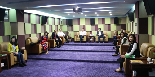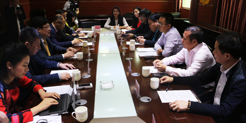 随后,郭丰海一行来到集团会议室召开第九届国际潮青联谊年会暨2016年天津· 世界侨商名品博览会推介交流座谈会,双方就座谈会主题进行深入交流互动,增进两地友谊,谋求合作共赢。