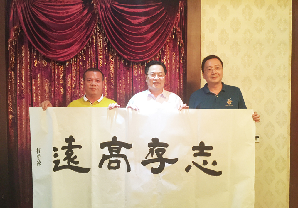省侨联主席程学源向集团董事长袁赵伟赠送亲笔墨宝。