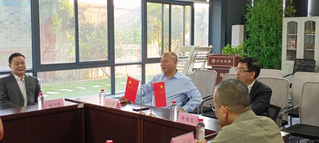 随后,为进一步推动大健康产业学院(医院)校企合作,集团董事长袁赵伟与许旭文书记一行在揭阳市大健康产业协会展开调研座谈会。