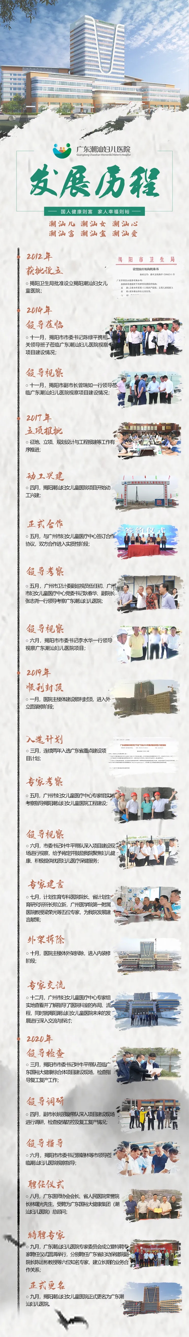 广东潮汕妇儿医院丨发展历程 分享到: 发布日期:2020-11-12点击次数:324 2012年, 广东潮汕妇儿医院的故事开始了,怀揣着【大家五湖四海 大爱海纳百川】的价值观,来自四面八方的同道中人汇聚于潮汕大地, 开始了他们和潮汕妇儿医院的故事。 你看,他们这8年,如此精彩 ∨ 故事未完待续 我们共同见证