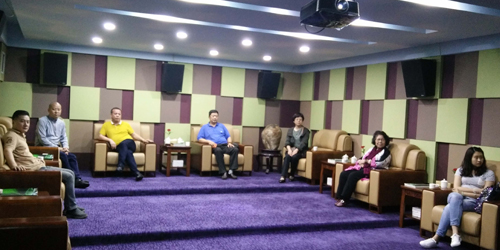 集团董事长袁赵伟先生陪同广东省珠宝玉石首饰行业协会领导在贵宾室交流座谈