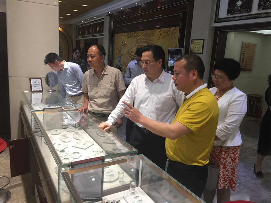 省侨联主席程学源一行在集团董事长袁赵伟陪同下,参观了集团旗下美康实业玉器体验馆,并进行了交流探讨。