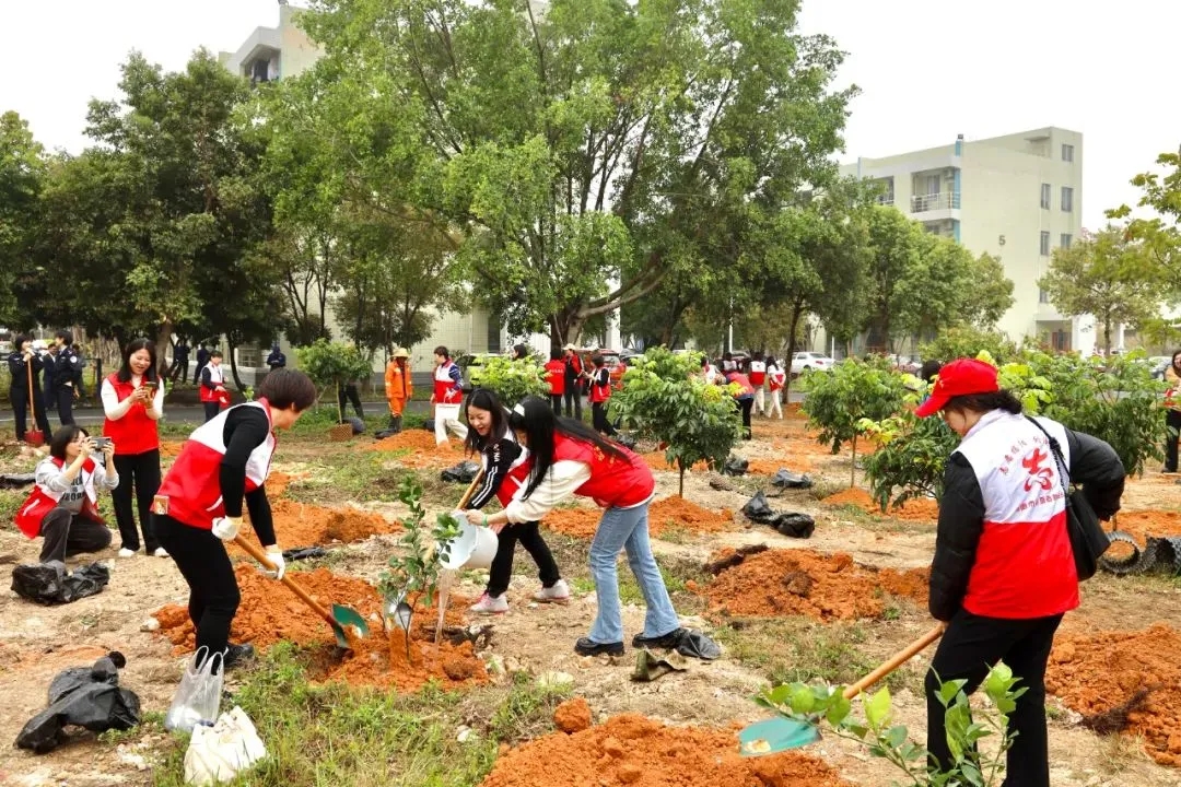 为深入贯彻落实党的二十大精神和习近平生态文明思想,纪念“三八”国际妇女节114周年,全面落实揭阳市高质量发展大会精神。2月29日,揭阳市妇联联合广东省路桥建设发展有限公司路达分公司共同举办“同植幸福树 共建绿美家”巾帼志愿植树活动,我院作为“揭阳市三八红旗集体”之一参与本次活动,妇委会主任许子佳与各受邀单位代表齐心协力、相互配合,种下一株株绿苗,为绿美揭阳增添一抹新绿。