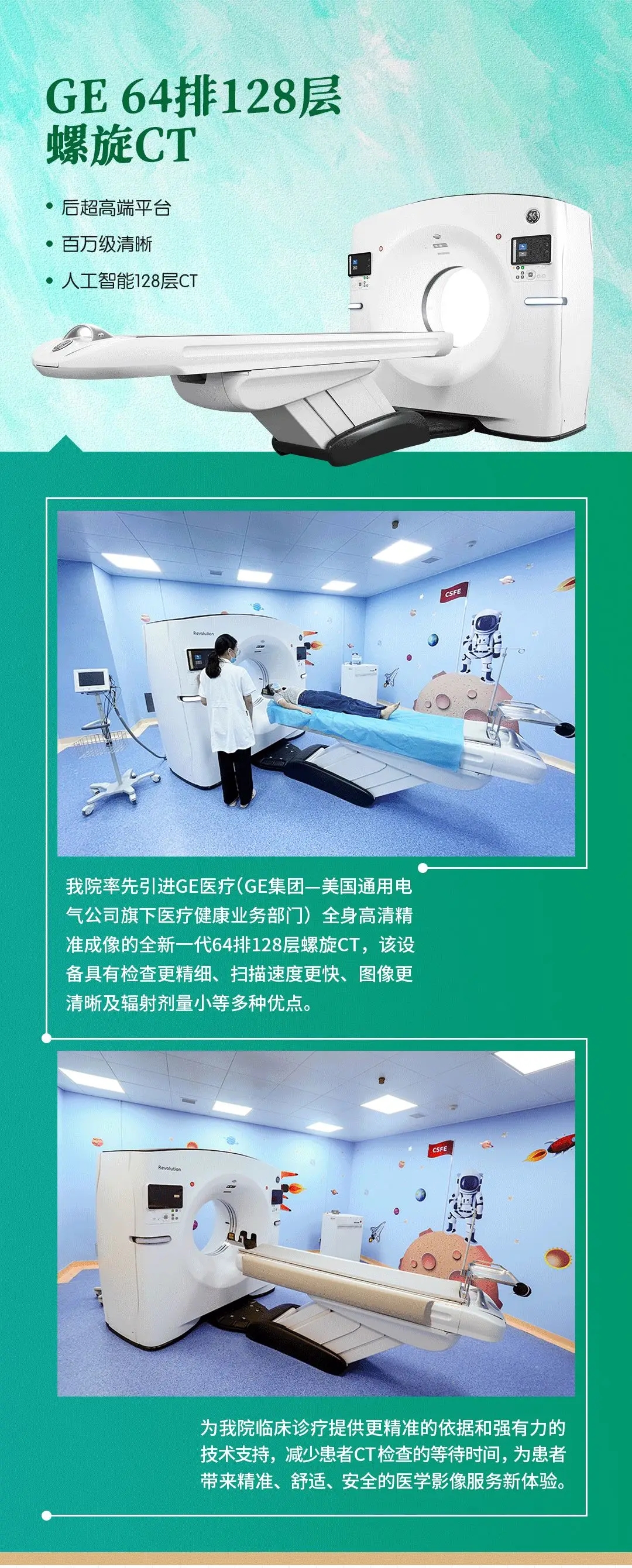 百万高清,纤毫毕现丨在揭阳也能享受到国际先进医疗影像服务啦! 分享到: 发布日期:2021-09-24点击次数:253 随着医疗技术发展与需求 越来越多高科技智能医疗设备发明 帮助医生发现病灶从而解决疾病 我院引进国际先进医疗设备 GE 64排128层螺旋CT 让病魔再也无处可藏~! GE 64排128层螺旋CT 百万高清 纤毫毕现 就在揭阳潮汕妇女儿童医院~