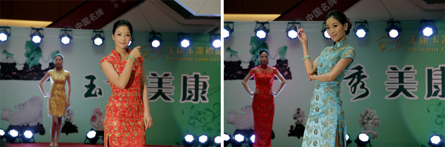 镁光灯下,身着传统旗袍的模特款款而来,而观众们啧啧称赞的,却是模特们佩戴的珠宝玉器饰品。美人虽美,玉色更佳。此次“玉秀美康”展出了广东山特集团系列珠宝玉器,如和田白玉镶金系列、花颜系列、笑口纳福系列等,做工精致,品味高雅,综合体现了广东山特集团在珠宝行业的实力。